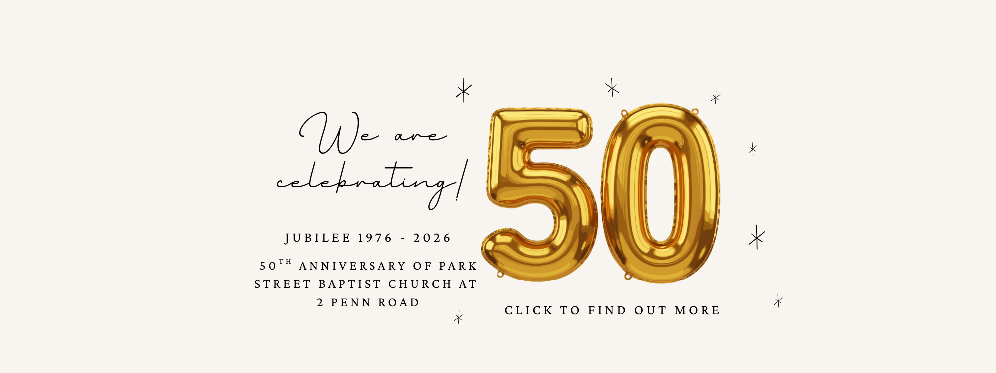 We're celebrating 50 years of PSBC worshipping at 2 Penn Road. We're holding a number of Golden Jubilee events in 2026 to mark this special anniversary. You can find more information here.